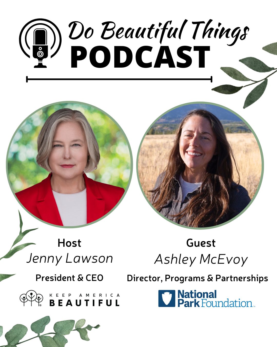 In this episode of “Do Beautiful Things,” Jenny Lawson sits down with Ashley McEvoy, Director of Programs and Partnerships at the National Parks Foundation, to explore the challenges and innovations behind keeping our national parks clean, green, and beautiful. They discuss waste reduction, recycling in remote locations, inspiring visitor stewardship, and how partnerships are shaping the future of sustainability in America’s most treasured outdoor spaces.