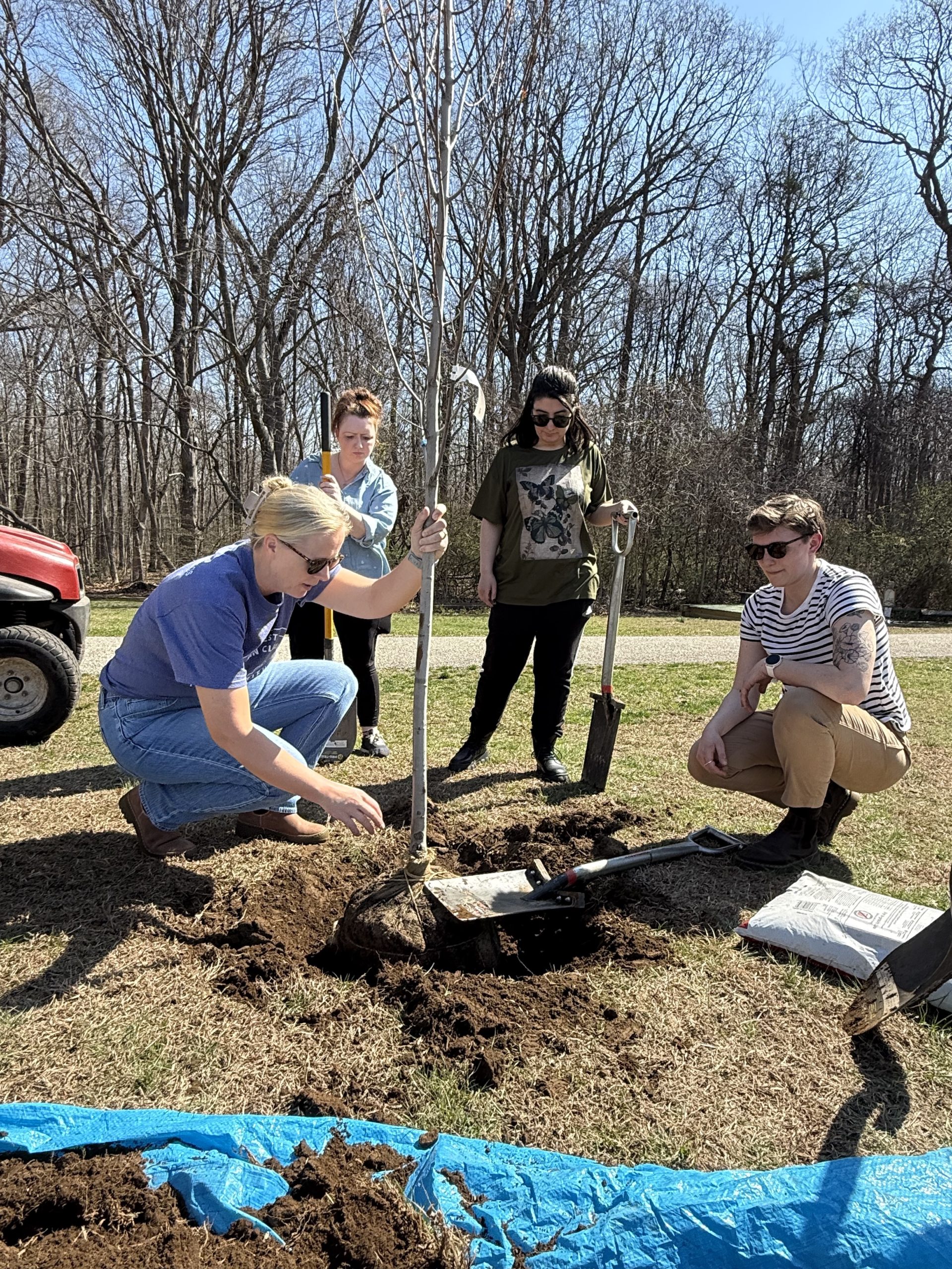 Participants and partners plant the inaugural tree marking the second annual Green Workforce Program in Norwalk.